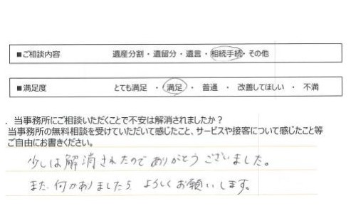 「不安はほとんど解消出来ました。自分で出来そうな手続も親切に教えていただいたのでとても安心出来ました」お客様から嬉しいお声をいただきました。